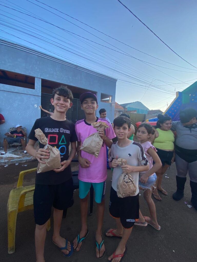 Dezembro é um mês que carrega uma magia especial, um tempo de contagem regressiva e de uma esperança que parece flutuar no ar. Em 2022, as Onças do Bem decidiram canalizar toda essa energia de antecipação para uma grande celebração de Natal no Jardim Dourado. A nossa missão ia além da entrega de presentes no dia; queríamos construir, ao longo das semanas, a expectativa de um momento verdadeiramente inesquecível. Nossa equipe esteve presente no bairro, não apenas no planejamento logístico, mas semeando a promessa de alegria. Conversamos com as famílias, contamos para as crianças que algo mágico estava por vir e preparamos cada cesta básica e cada presente com a certeza de que estávamos empacotando não apenas itens, mas a materialização de um sonho coletivo. O objetivo era que, no grande dia, a festa não fosse apenas uma surpresa, mas a gloriosa chegada de algo muito esperado por todos.