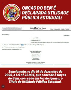 ONÇAS DO BEM É DECLARADA UTILIDADE PÚBLICA ESTADUAL! A sociedade de Foz do Iguaçu tem mais um grande motivo para comemorar! Foi sancionada no dia...